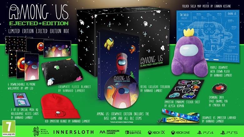 A Maximum Games, Innersloth, e o Dual Wield Studio anunciaram que as três Edições de Colecionador previamente anunciadas de Among Us serão lançadas na Europa e na América do Norte no início do próximo ano. Já a Crewmate Edition, sairá em vários territórios internacionais em dezembro.