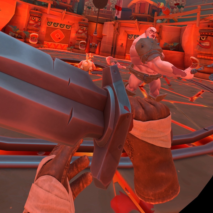 No que toca ao departamento visual, Gorn 2 mostra-se polido, com visuais cartunescos, que convertem o Gore do jogo em algo menos impactante. Com esta direção artística, debato-me se o jogo realmente devia manter a estrição de idade para 18+ que tem atualmente definida. Já na performance também não desiludiu, tendo utilizado a combinação do Headset VR Meta Quest 3 e do o Metal Quest Link para executar o jogo a partir da Steam VR. Com a minha já velhinha NVIDIA RTX 2070 SUPER, a experiência foi estável e com poucos ou nenhuns entraves pelo caminho.