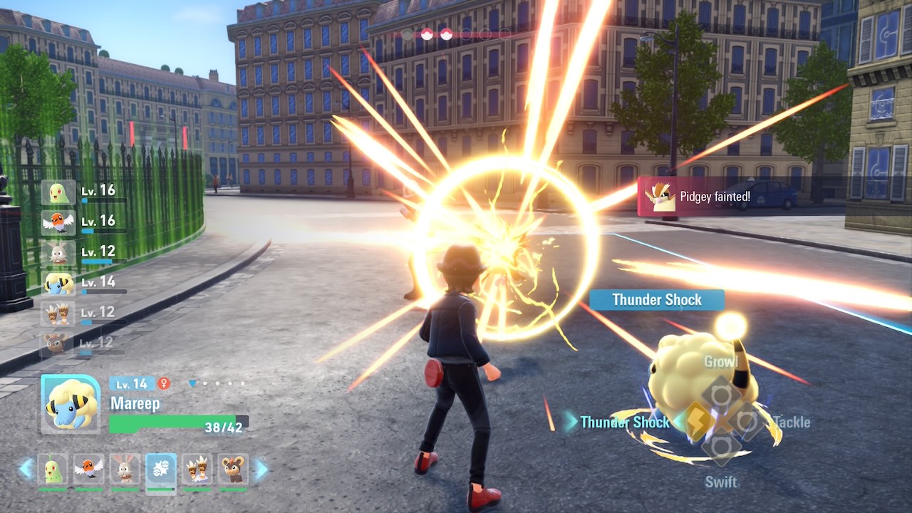 As novas mecânicas de Pokémon Legends: ZA mudaram todo o paradigma das batalhas de Pokémon com que sempre nos acostumamos. Estas são agora totalmente realizadas em tempo real. Muitíssimo semelhante a Xenoblade, temos agora acesso aos nossos ataques, clicando no botão correspondente entre A, B, X, e Y, sendo que em vez de um nº limitado de utilizações, temos agora Cooldowns, ou seja, os ataques possuem agora um tempo de espera entre utilizações. Mas não é tudo, os próprios ataques, em especial os que podem interagir com o campo de batalha ganharam o seu grande destaque, pois ataques como “Toxic Spikes” são visivelmente colocados em campo, sendo que tu podes abrigar-te atrás destes para que o Pokémon do oponente evite avançar com ataques físicos contra ti, arriscando a ficar envenenado caso avance. Outra coisa é também como podemos evitar alguns ataques, afastando-nos do Pokémon ou deslocando-nos para os lados. Porém, isto nem sempre funciona, especialmente quando somos atacados com um massivo Surf, que ocupa uma grande área.