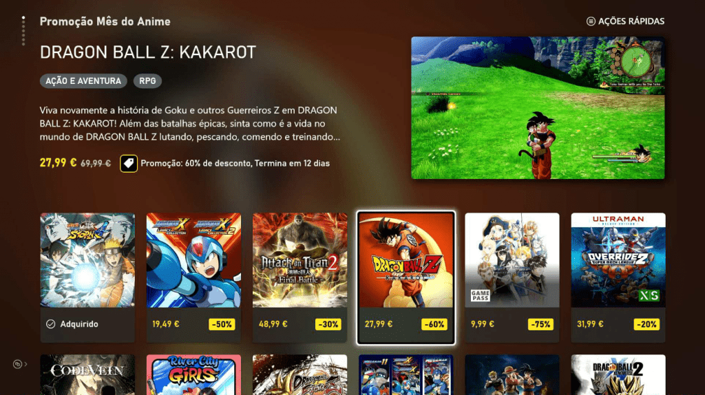 Esta semana a Xbox anunciou algumas promoções, e desta vez o seu foco foi em jogos de Anime (series animadas japonesas). Nela, podemos ver alguns jogos que valem a pena conferires, caso tenhas uma Xbox One ou Series X/S.
